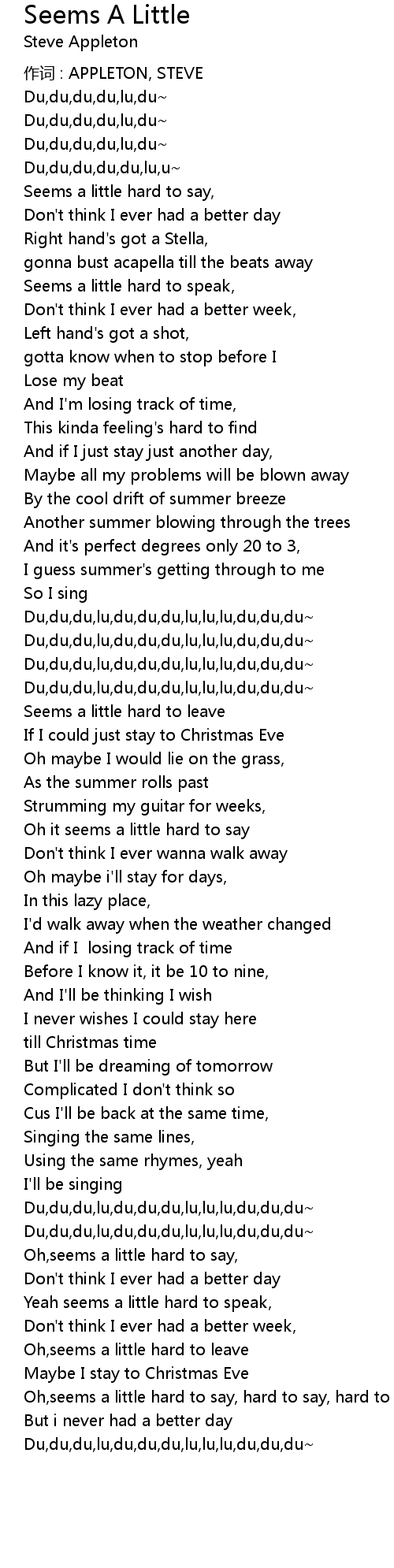 | 歌曲 | Seems A Little |