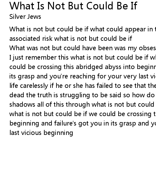 I just remember this what is not but could be if what is not but could be if we could be crossing this abridged abyss into beginning and failure's got you in its grasp and you're reaching for your very last vicious beginning one has lived life carelessly if he or she has failed to see that the truth is not alive or dead the truth is struggling to be said so how do we get out of this? family shadows all of this through what is not but could be if with all associated risk what is not but could be if we could be crossing this abridged abyss into beginning and failure's got you in its grasp and you're reaching for your very last vicious beginning |