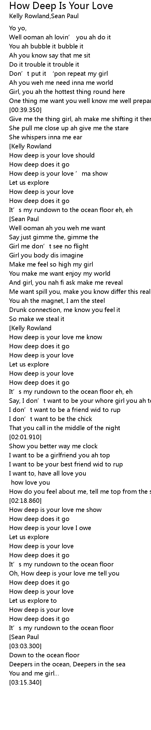 | [02:40.730] | Oh, How deep is your love me tell you |