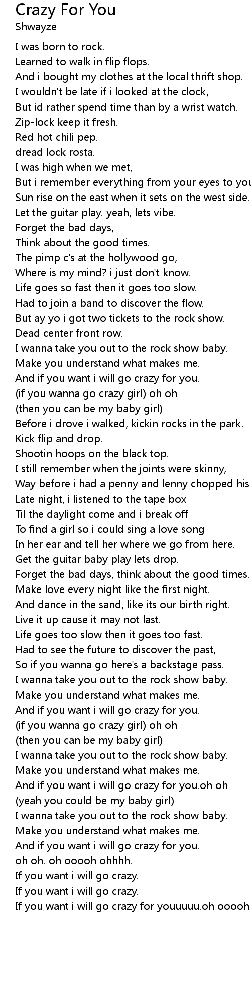If you want i will go crazy for youuuuu.oh ooooh ohhhh |
