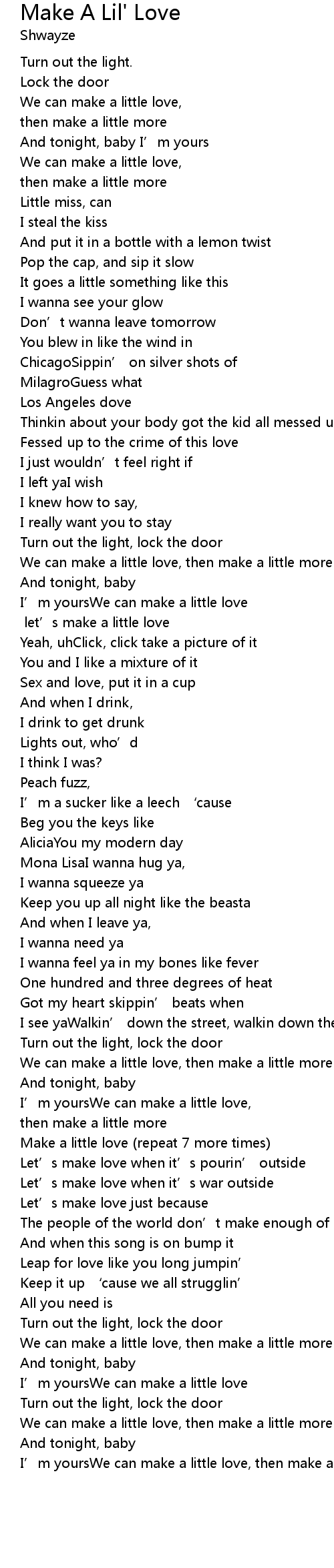| [02:11.00] | Make a little love (repeat 7 more times) |