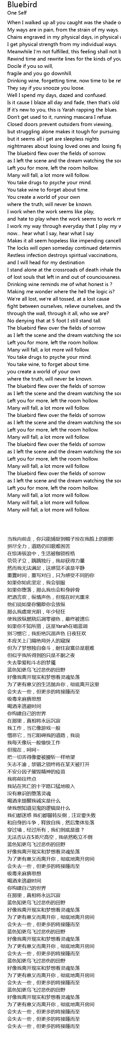 | [03:19.98] | The bluebird flew over the fields of sorrow |