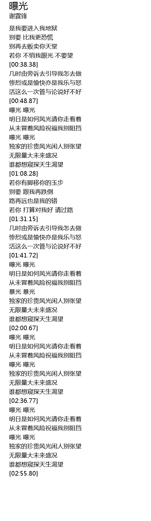 | [02:28.12] | 曝光 曝光 |