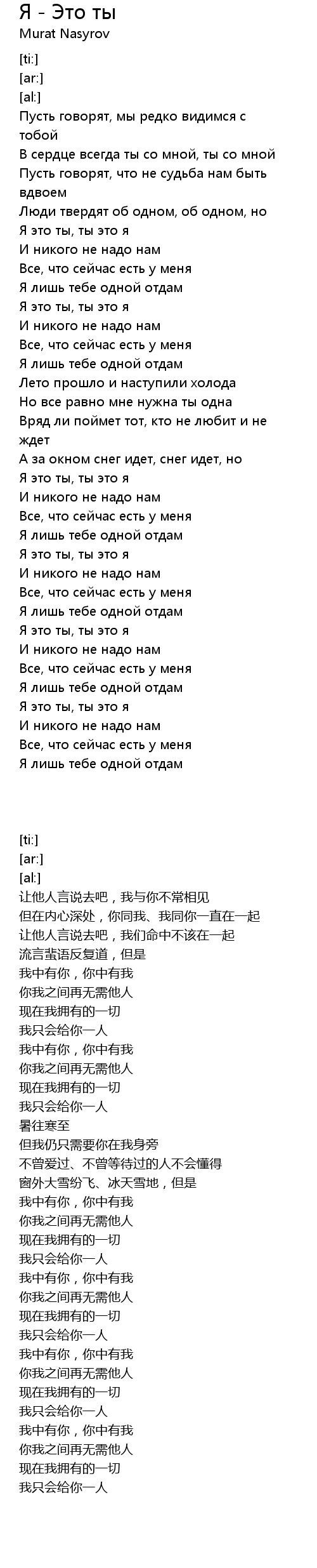 | [00:41.62] | В сердце всегда ты со мной, ты со мной |