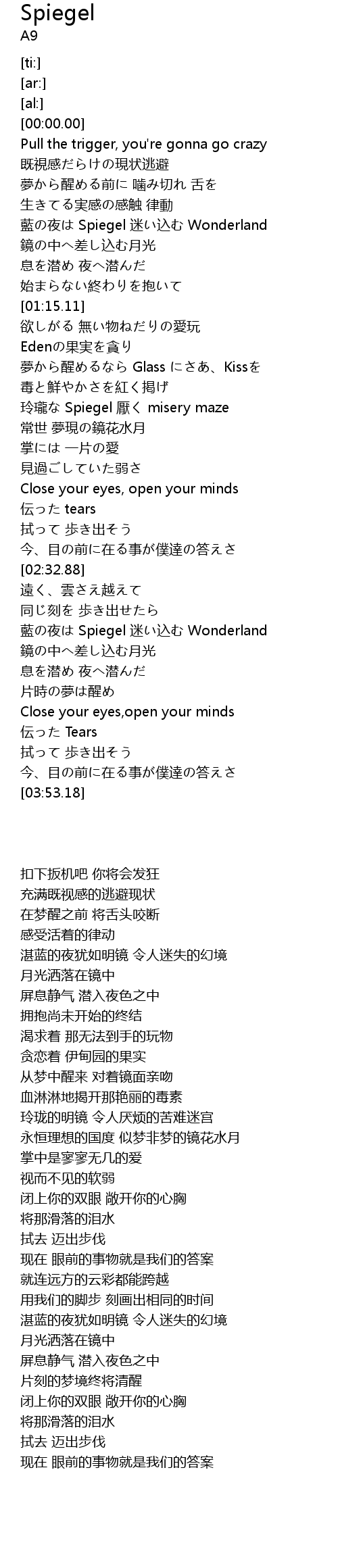 | [01:46.83] | 玲瓏な Spiegel 厭く misery maze |