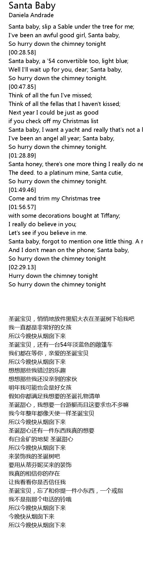 [02:20.45] And I don't mean on the phone; Santa baby,