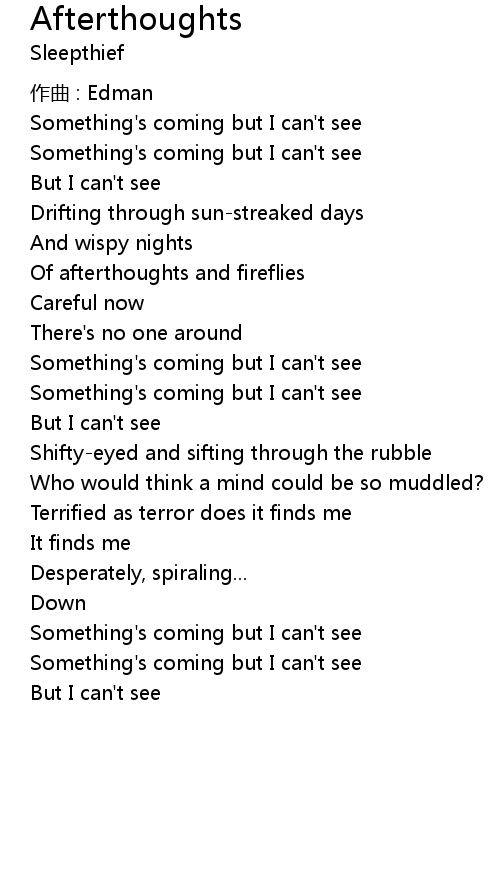 | 歌曲 | Afterthoughts |