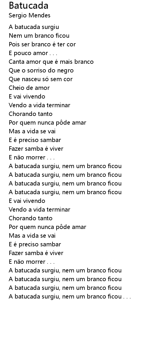 | A batucada surgiu, nem um branco ficou | |