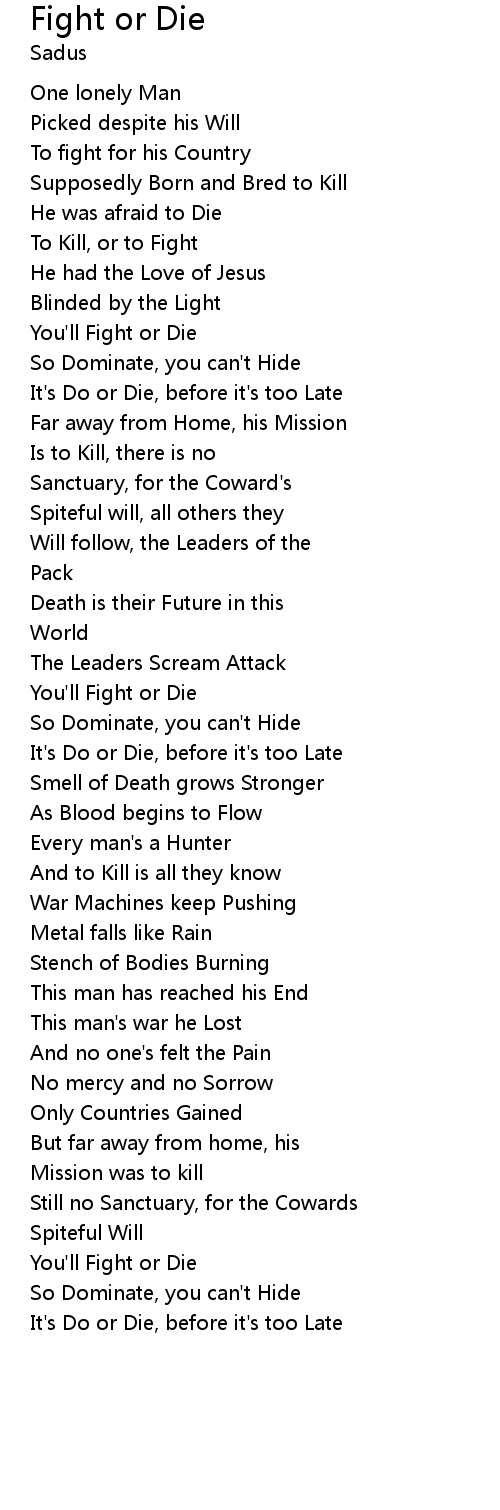 You'll Fight or Die |