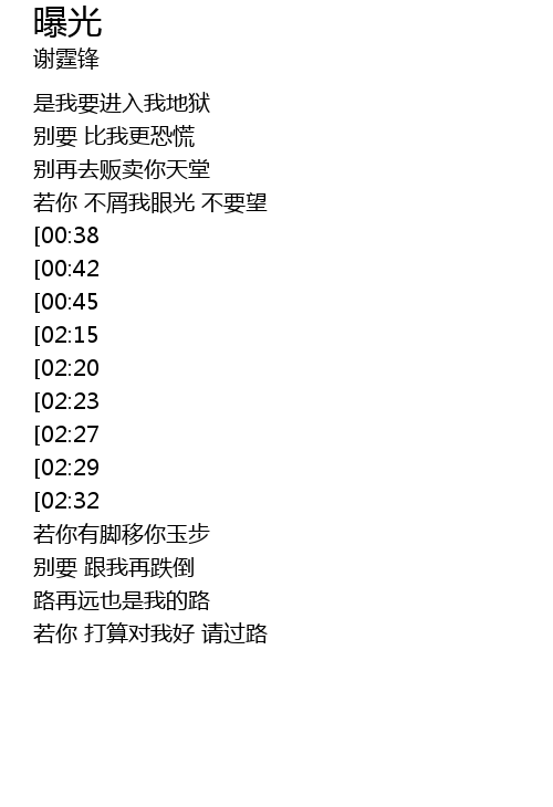 | [00:34] | ruo ni bu xie wo yan guang bu yao wang |