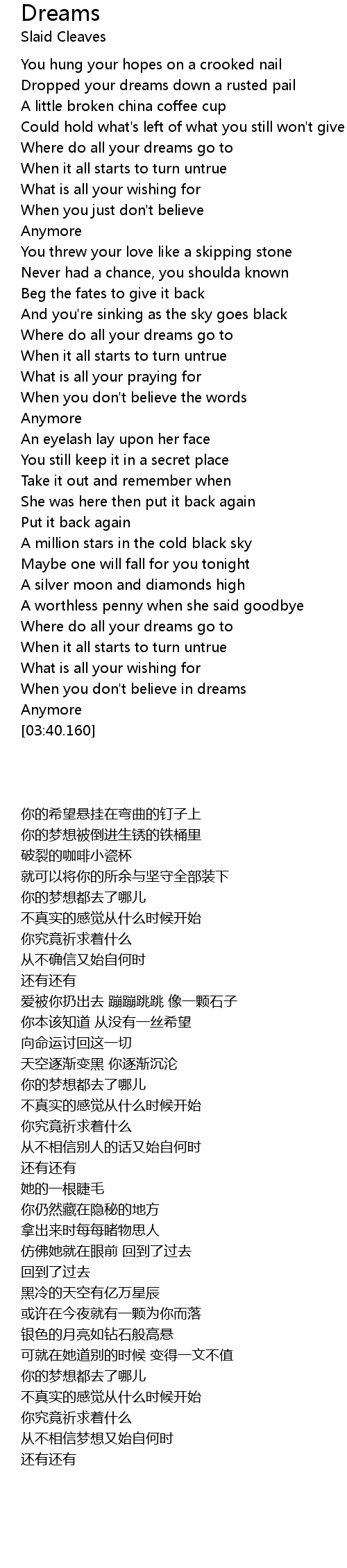 When you don't believe in dreams |