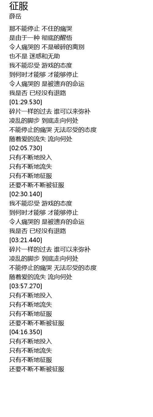 | [01:48.390] | 不能停止的痛哭 无法忍受的态度 |