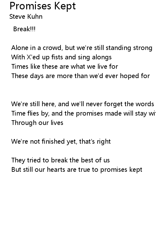 | But still our hearts are true to promises kept |