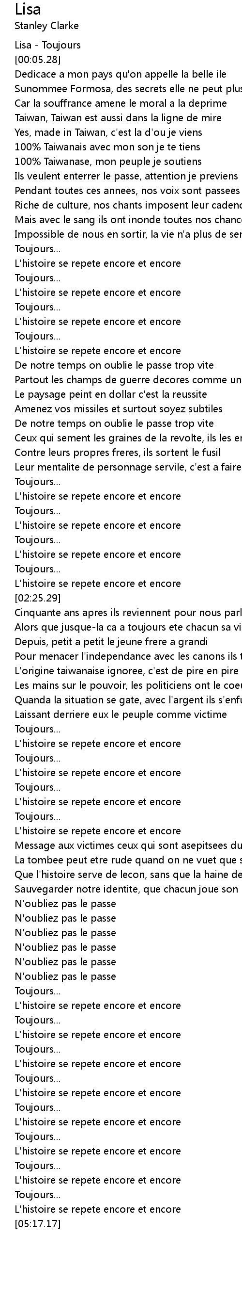 [00:35.01] 100% Taiwanase, mon peuple je soutiens