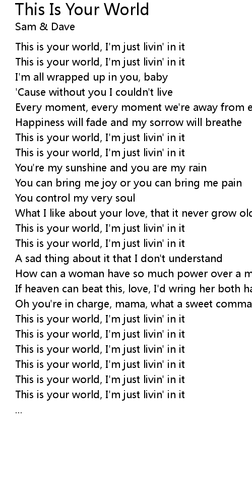 This is your world, I'm just livin' in it |