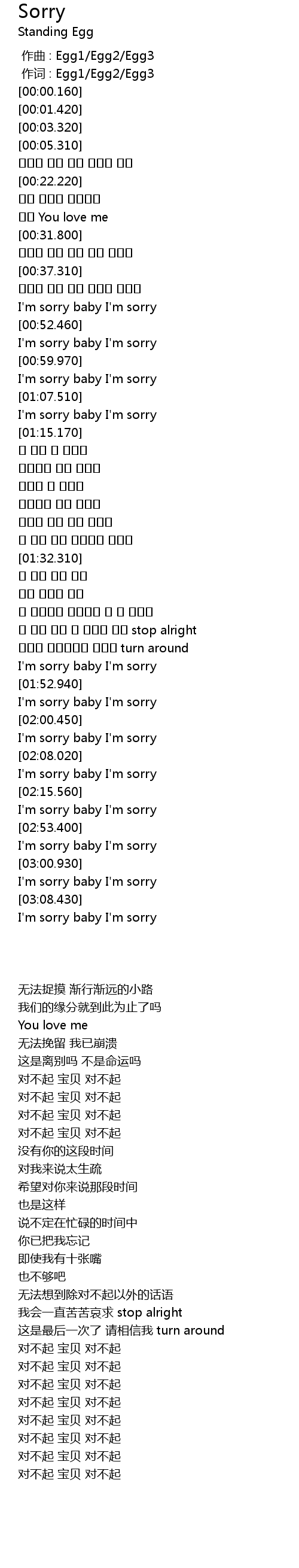 | [03:03.230] | 对不起 宝贝 对不起 |
