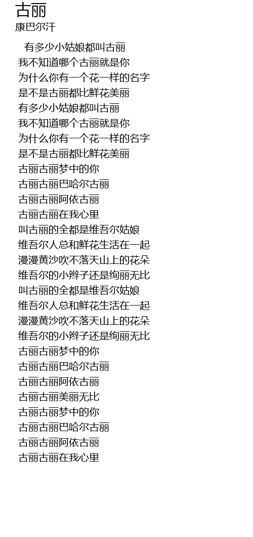 | [01:22.90] | 古丽古丽阿依古丽 |