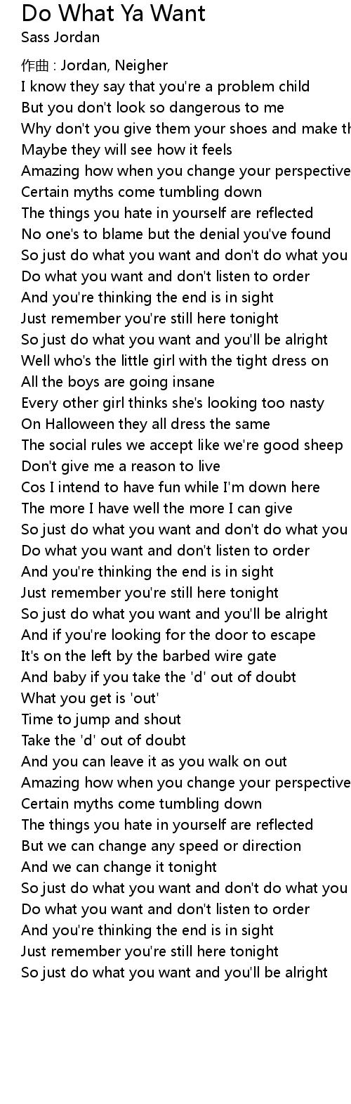 | So just do what you want and don' t do what you oughta | |