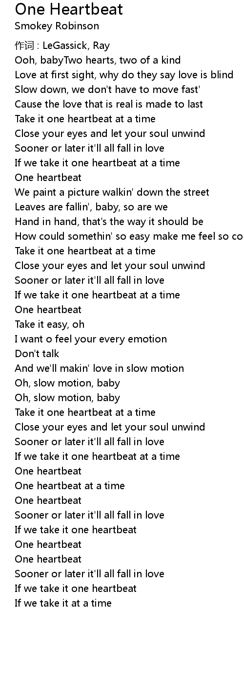 | Take it one heartbeat at a time | |