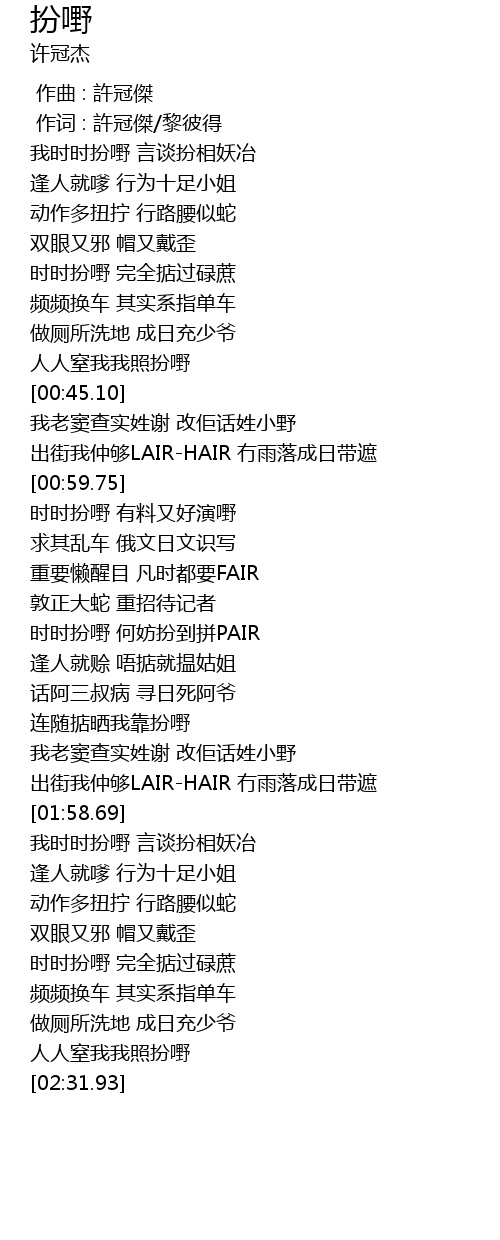 | [00:41.29] | 人人窒我我照扮嘢 |