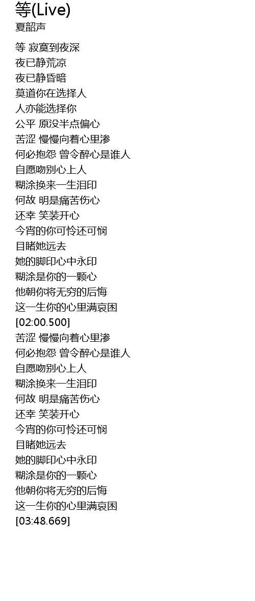 | [01:48.500] | 他朝你将无穷的后悔 |