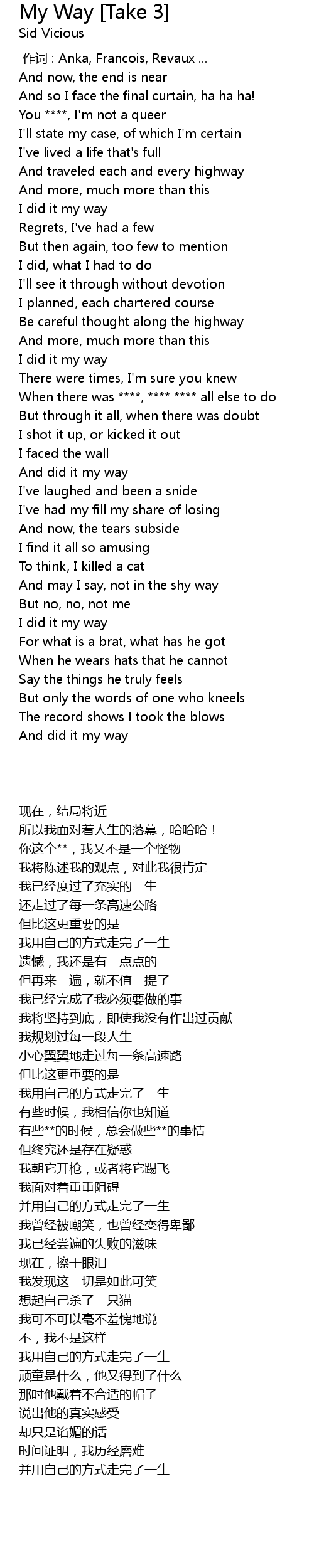 | [01:33.50] | I did it my way |
