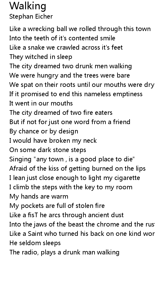 The radio, plays a drunk man walking |