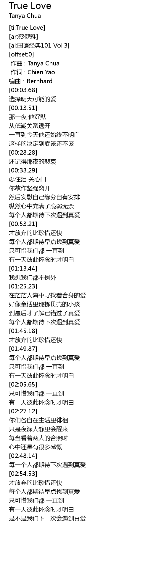 | [02:59.58] | 每个人都期待早点找到真爱 |