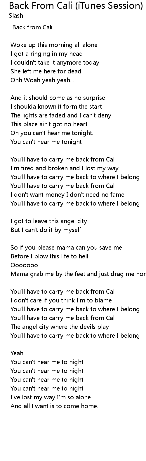 You'll have to carry me back from Cali |