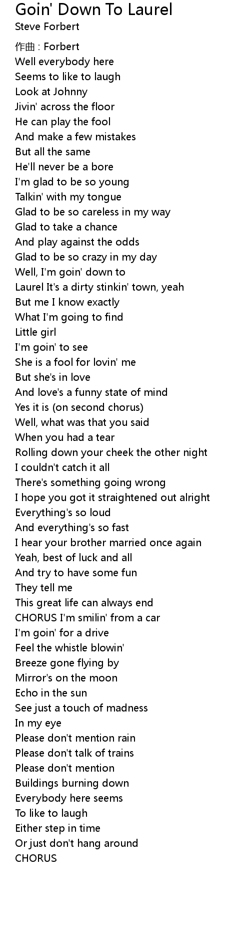 | 歌曲 | Goin' Down To Laurel |