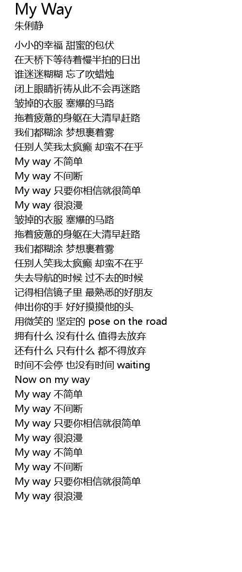| [02:43.15] | My way zhǐ yào nǐ xiāng xìn jiù hěn jiǎn dān |