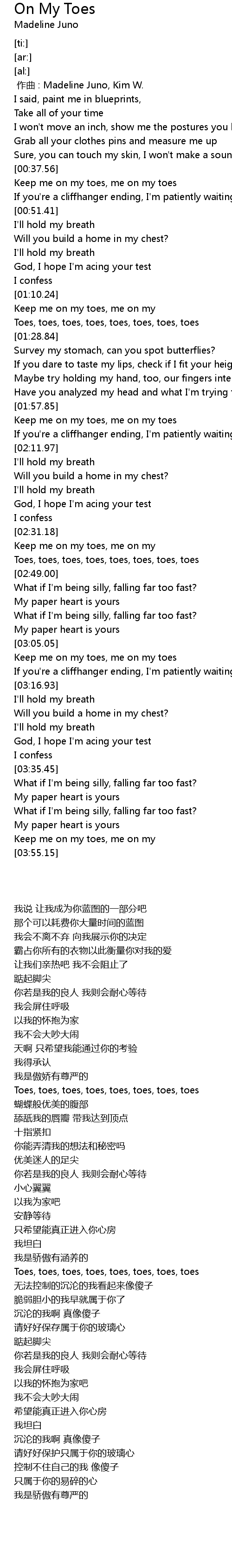 | [01:21.39] | Toes, toes, toes, toes, toes, toes, toes, toes |