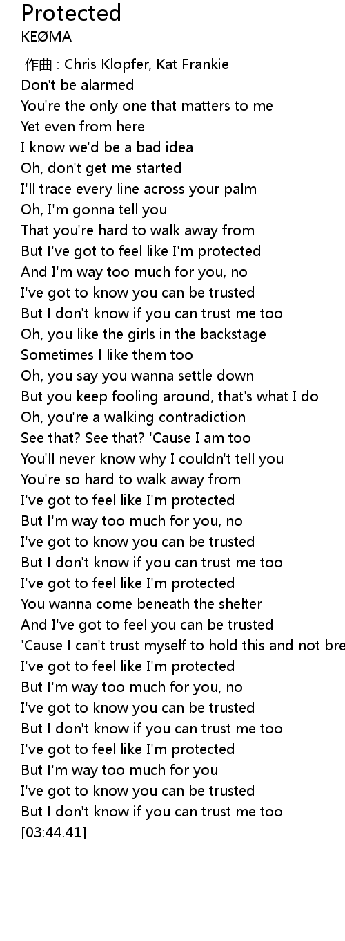 | [02:56.30] | I' ve got to feel like I' m protected |