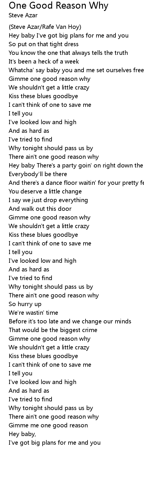 Gimme one good reason why |