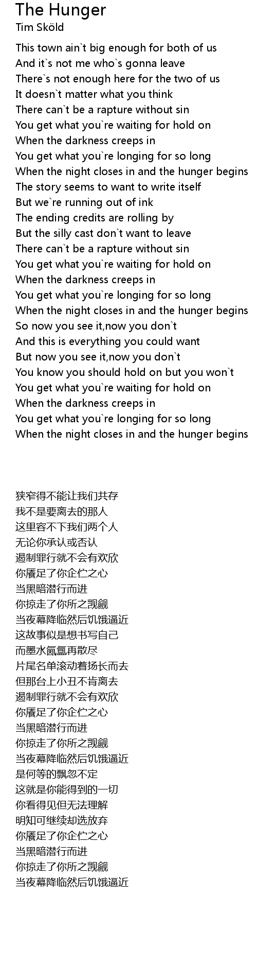 When the night closes in and the hunger begins |