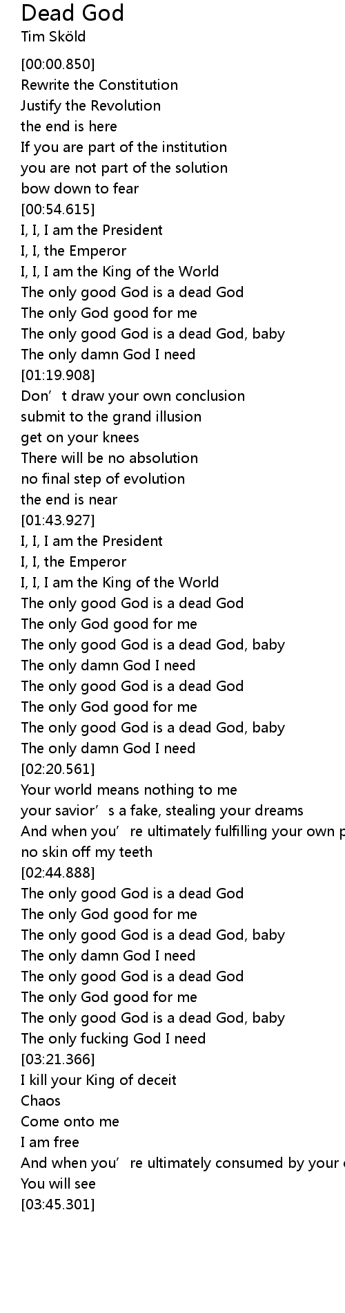 | [01:08.199] | The only good God is a dead God |