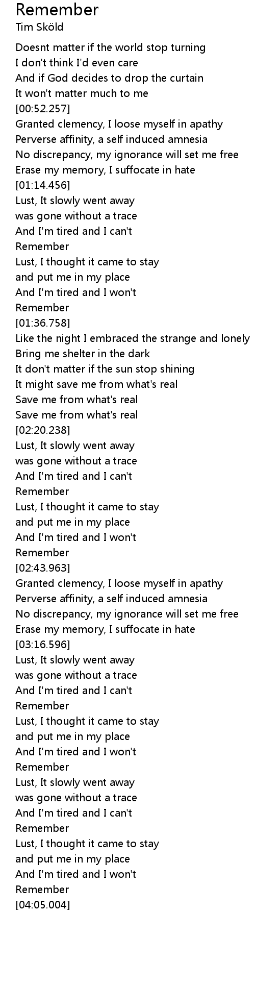 | [02:59.338] | Perverse affinity, a self induced amnesia |