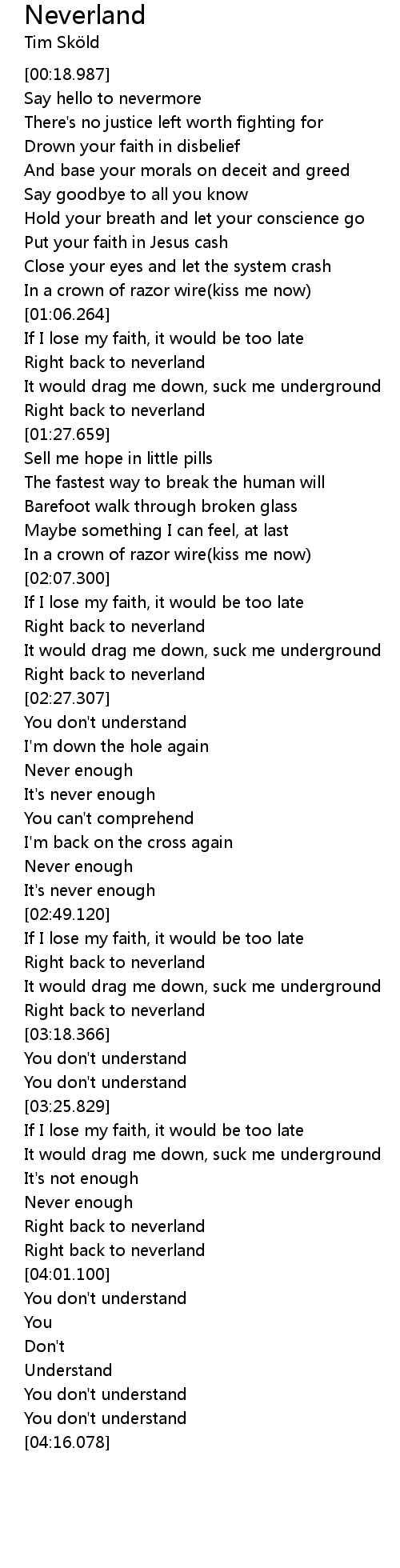 | [03:51.141] | Right back to neverland |