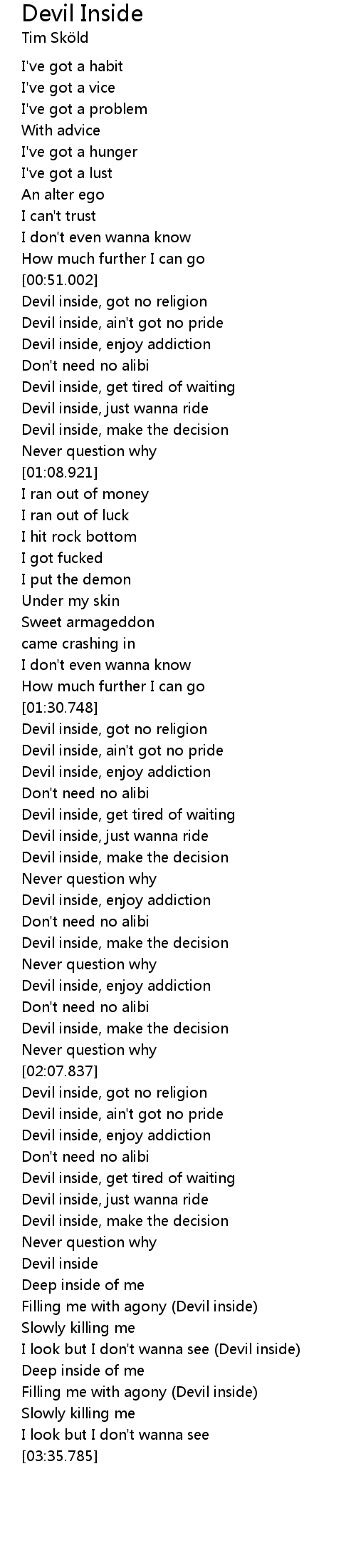 | [03:19.016] | I look but I don't wanna see (Devil inside) |
