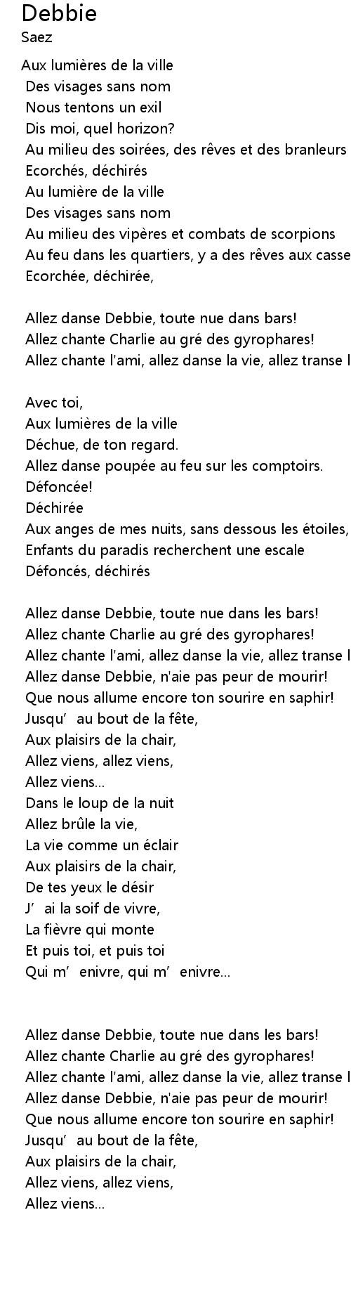 | Allez danse Debbie, n' aie pas peur de mourir! | |