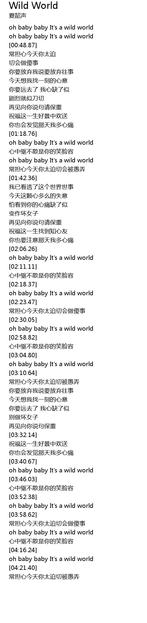 | [04:17.67] | oh baby baby It' s a wild world |