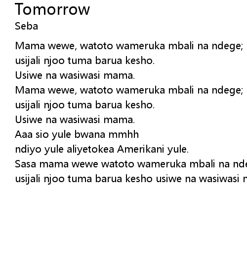 | [04:10.55] | usijali njoo tuma barua kesho usiwe na wasiwasi mama |