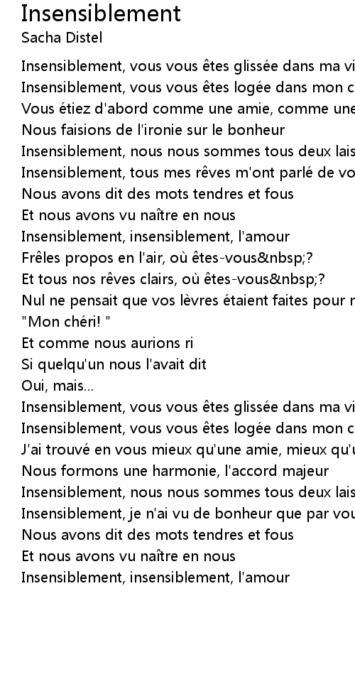 | Insensiblement, tous mes r ves m' ont parle de vous | |