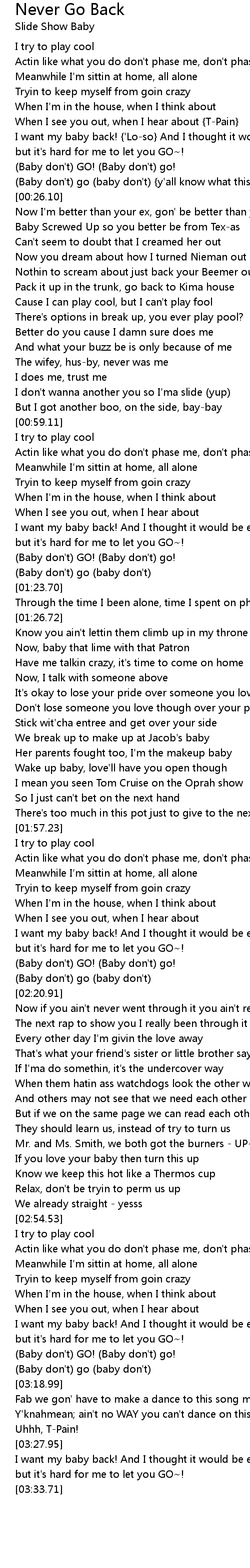 Never Go Back 歌词
