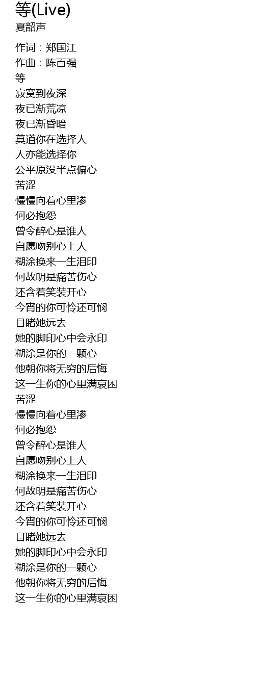 | [01:48.944] | 他朝你将无穷的后悔 |