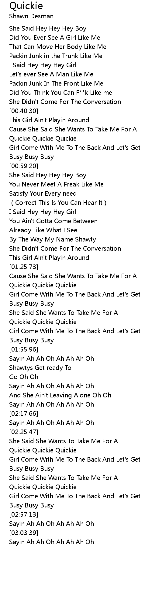 | [01:33.70] | Girl Come With Me To The Back And Let's Get |