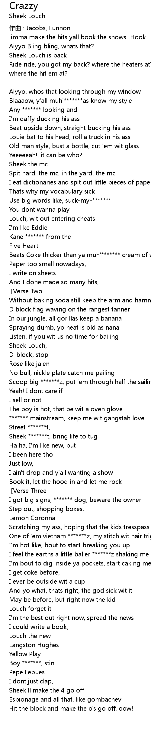 | Bring the hardest z from ya block, what up! Hook Verse Three | |