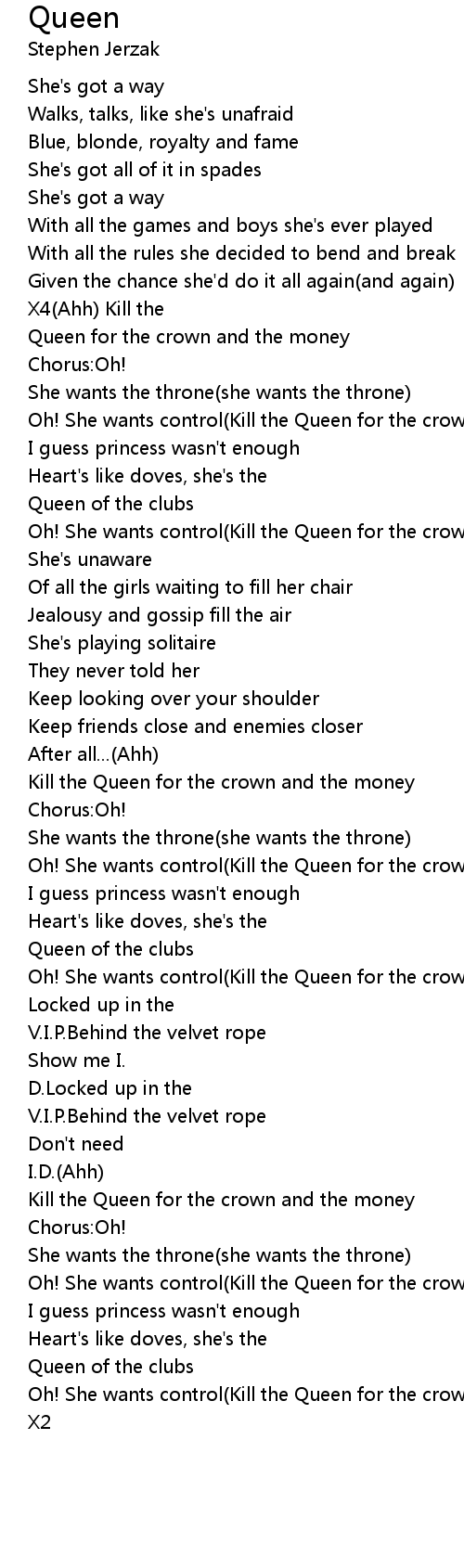Oh! She wants control(Kill the Queen for the crown and the money)