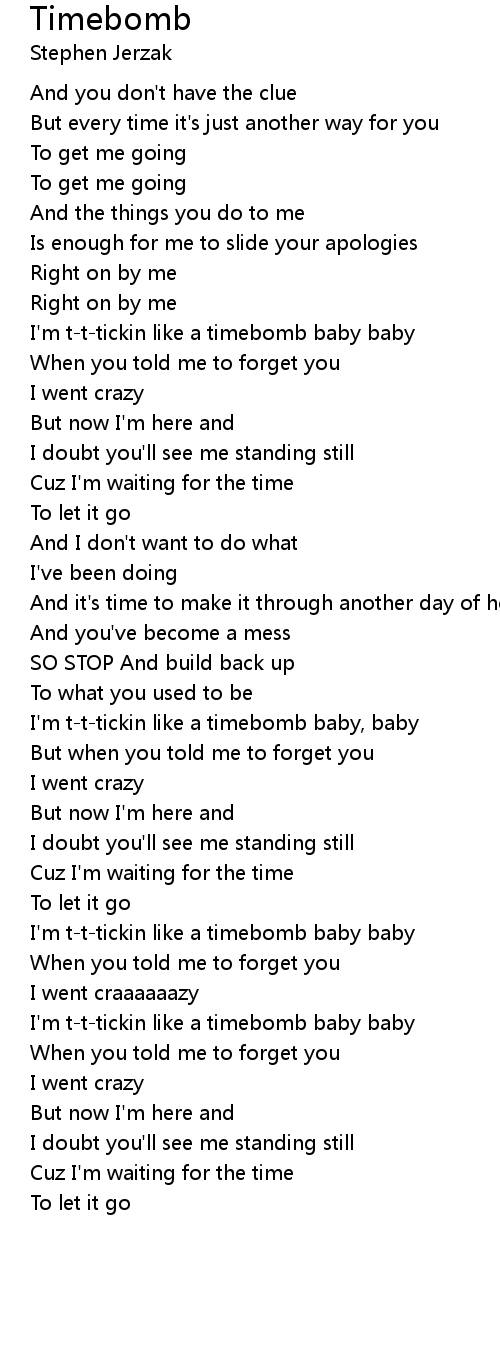 I'm t-t-tickin like a timebomb baby baby |