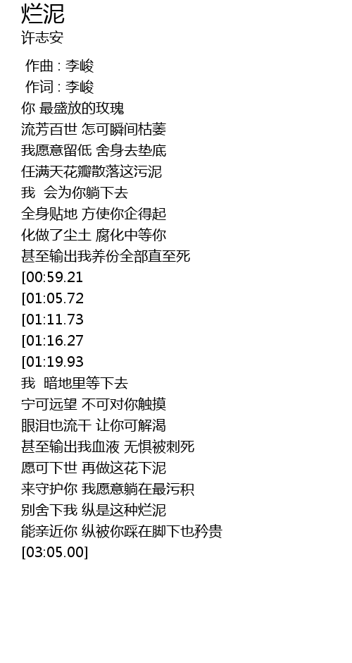 | [02:02.09][00:59.21] | 愿可做你 脚下那堆烂泥 |